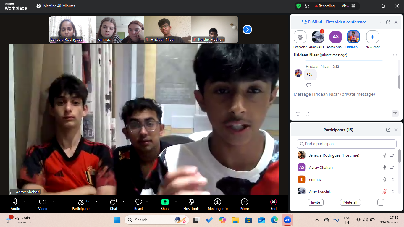 Video Conference: Students participated in an engaging discussion with St. Vincent College, Belgium, to receive feedback on their business ideas. The participants from St. Vincent College shared valuable insights about their award-winning project from 2024–25. Students actively interacted by asking thoughtful questions about the college’s project and approach.