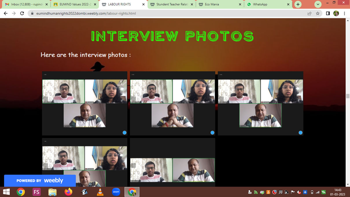 The EUMIND Project has been very exciting and illuminating experience for all of us. During this time we all got to know the culture of the other side of the world and developed our personality with qualities like helping each other, teamwork, and adhering to deadlines and submitting our work on time. The Human Rights group has put light on the basic Human Rights in India, the Go-green group emphasizes on the climate crisis around the world which has increased rapidly since last few decades, the Values group has made us realise the importance of our relationships and our responsibilities to them.